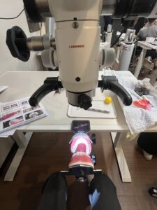 マイクロスコープを覗きながら歯石の除去の練習をしました🦷ちょっとした角度の違いで見えやすさが変わるのでとても難しいです😓